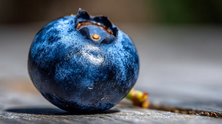 Single blueberry showcasing its vibrant color and delicate texture on wood surface