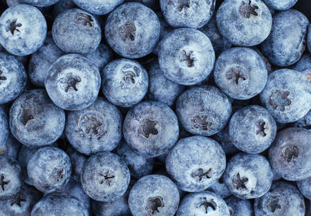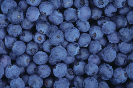 Blueberries. Creative background design with food theme, focus on the pile of fresh Blueberries