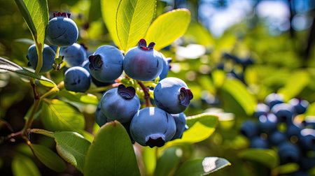 Organic blueberry bush, ripe fruit on twig, beauty in nature generated by artificial intelligence