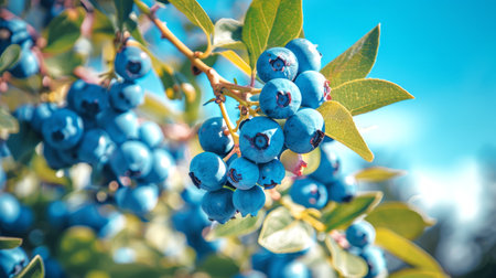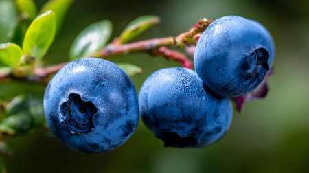 Vibrant Blueberries Gleaming on Branch: Freshness and Natural Beauty Captured Perfectly