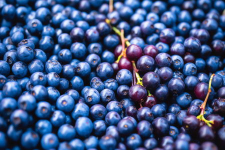 Bilberry background texture nature. Top view blue