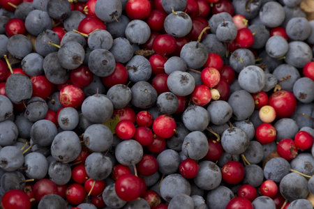 The blue and red berries are loose