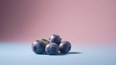 Fresh blueberries scattered on a light blue surface create a vibrant and appealing scene. Ideal for food photography, healthy eating themes, or culinary inspiration.