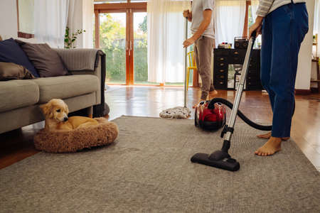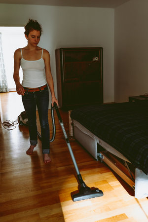 vacuum cleaning at home low angle