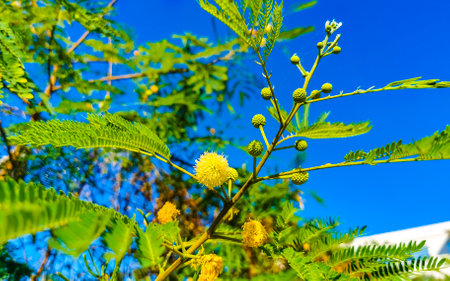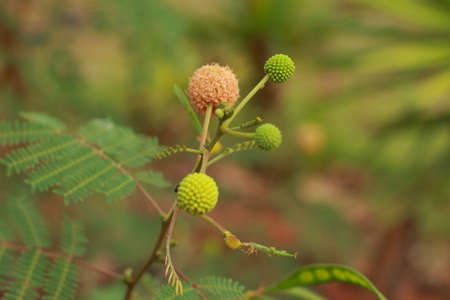 Nature branches ,round flower and bud leaves of Mimosa pudica