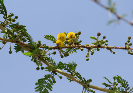 Prosopis juliflora tree flowering with leaves in chabahar province, iran. Prosopis juliflora is a shrub or small tree in the family Fabaceae, a kind of mesquite.