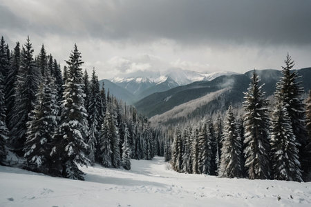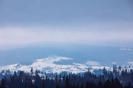 Snowy winter landscape in the Carpathian Mountains, Ukraine.