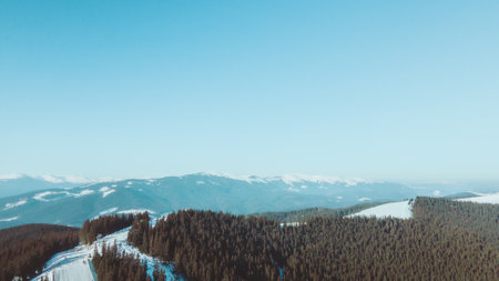 panoramic view of bukovel in Ukrainian carpathian mountains. copy space