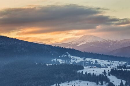 Beautiful winter landscape in the mountains. Sunrise