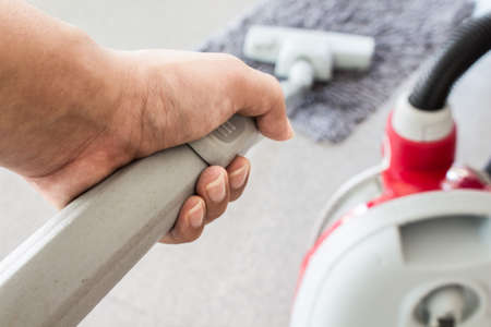 Close-up Of man using A Vacuum Cleaner professional vacuum cleaner