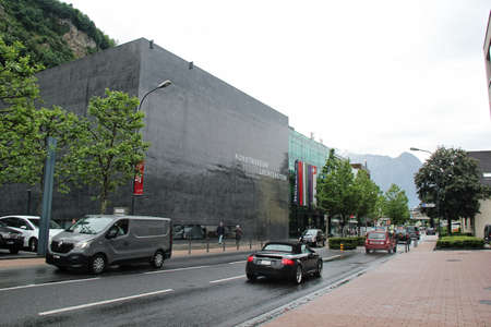Kunstmuseum building, a modern art museum and the Hilti Foundation in streets of Vaduz, Principality of Liechtenstein