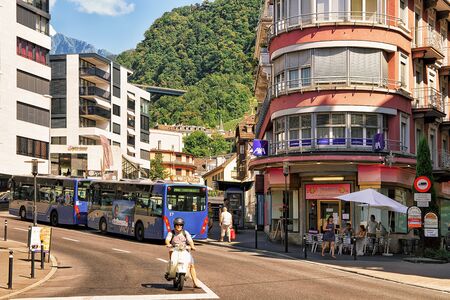 Montreux, Switzerland - August 27, 2016: Street with people in Montreux town on Geneva Lake in Swiss Riviera.