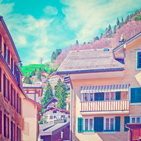Houses on the Hills of the Swiss Ski Resort in the Spring