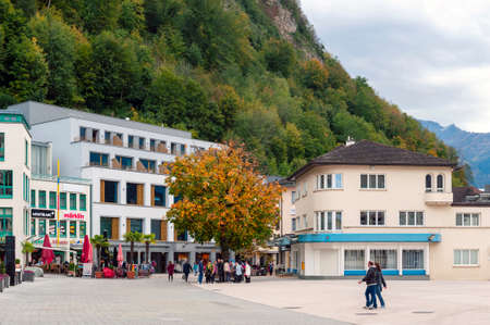 Vaduz, Liechtenstein, September 27, 2015: A pedestrian street in the center of Vaduz - a capital of Liechtenstein