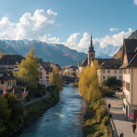 Scenic Alpine Town Vaduz with Church and Majestic Mountains, Liechtenstein 13.05.2024 15:00