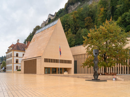 Impression around the House of Parliament in Vaduz, the capital city of Liechtenstein at autumn time