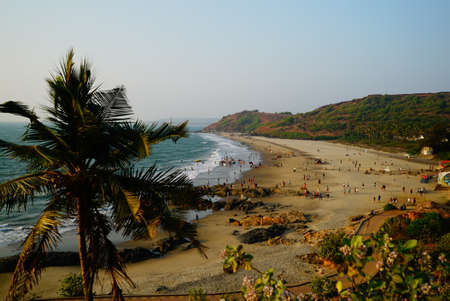 Arambol beach in Goa with tourists.