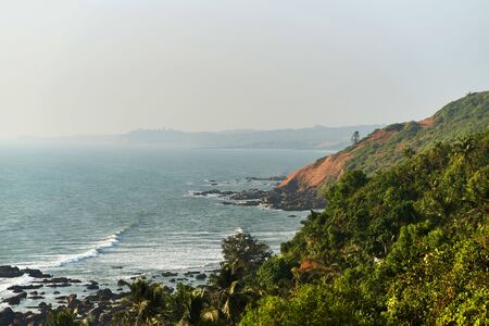 Goa. India. Beautiful view from the steep shore to the jungle and the sea