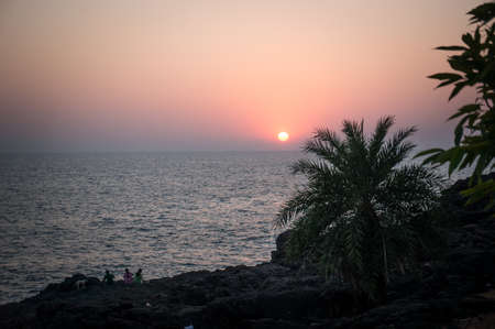 Scenic view from sand beach in Goa to beautiful sunset above the Arabian sea