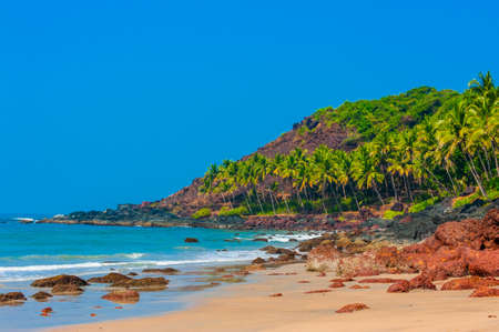 The coast of the sea with palm trees on Goa. India.