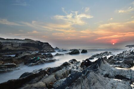 Rocks at Vagator beach, Goa in long exposure