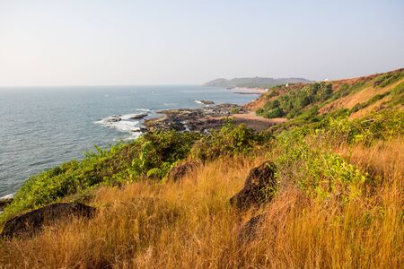 View of the ocean and landscape from Mount Arambol. India, Goa, Arambol.
