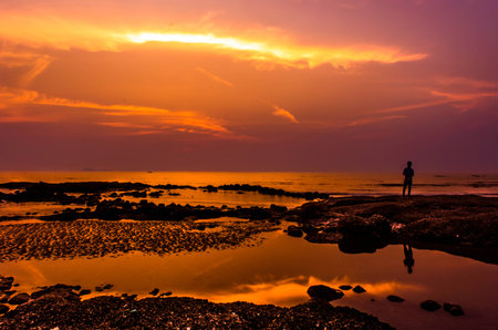 Sunset with clear Reflection of a Lonely Man.