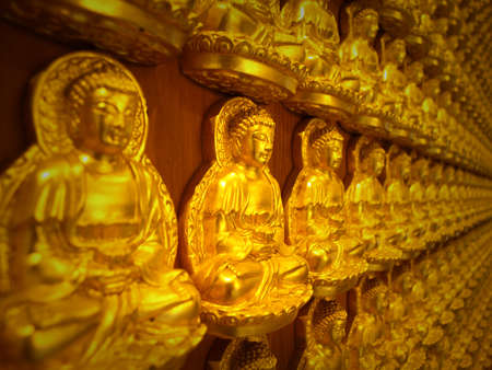 Hundreds of golden Buddha statues background at chinese temple