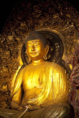 Buddha statues in Longhua Temple in Shanghai, China. Famous buddhist temple in China
