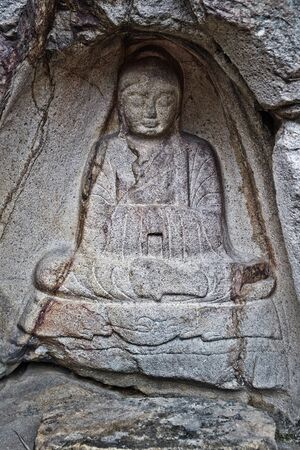 A statue of Buddha in Bulgok, Namsan Mountain, Gyeongju, Korea.