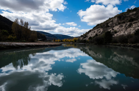 Majestic Mountain Valley Vista with River and Autumnal Trees