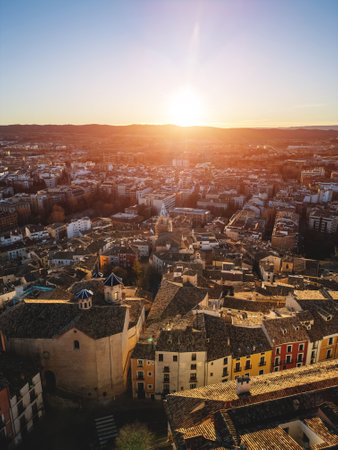 cozy streets of ancient European town Cuenca, Spain, aerial view