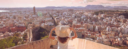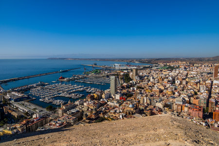 Panoramic view of Alicante city from the watchtower Santa Barbara castle. Valencia province, Spain.