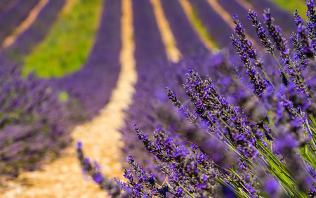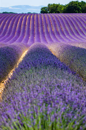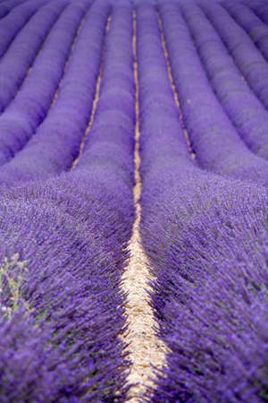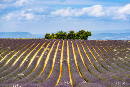 Lavender flower blooming scented fields in endless rows. Valensole plateau, provence - France