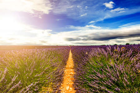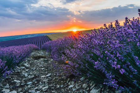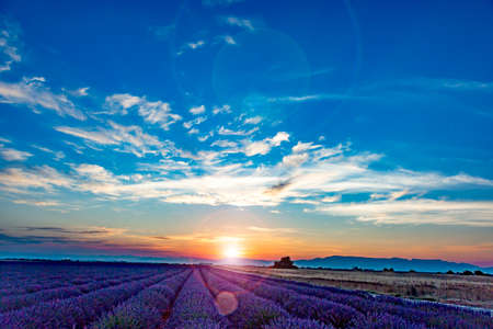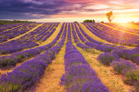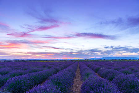 Beautiful sunset lavender field summer landscape near Valensole.Provence,France