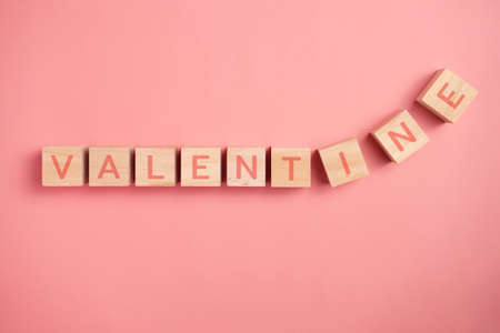VALENTINE'S DAY word of colorful cube alphabet on wooden background. Valentine's Day Concept