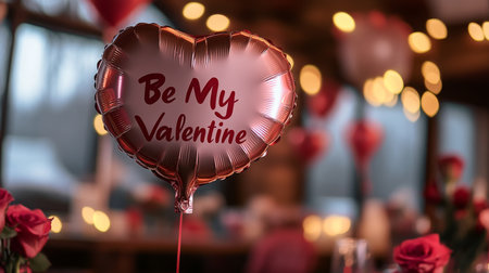Heart-shaped balloon with romantic message in decorated dining setting for Valentines Day