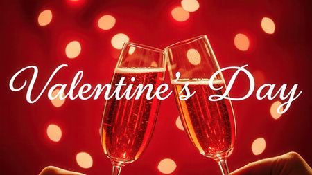 Valentines day background with champagne glasses and red roses