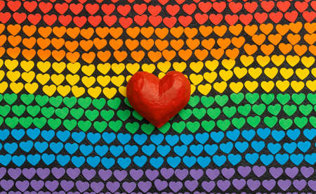 flowers and Rainbow paper heart. LGBT concept. copy space