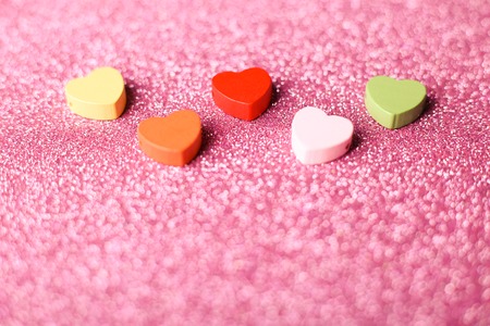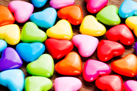 Flat Lay Colourful Heart Shaped Candy abstract multicolor background