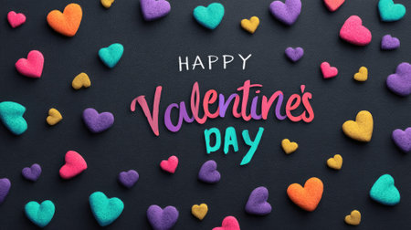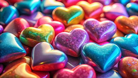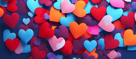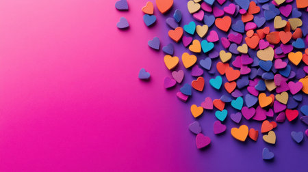 Brightly colored hearts scattered on a vibrant pink and purple gradient background, perfect for love and affection themes