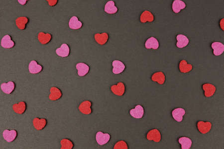 Hearts abstract background in red pink colors, on black texture - Happy Valentine's Day - Hearts Love pattern.