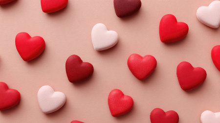 A vibrant array of heart shapes in red, pink, and white on a soft background, perfect for expressing love and emotion in creative designs and romantic celebrations.