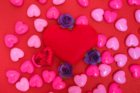 Creative Valentine Day romantic composition flat lay love holiday celebration with red heart.