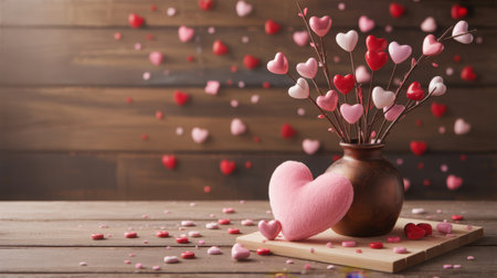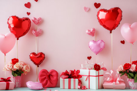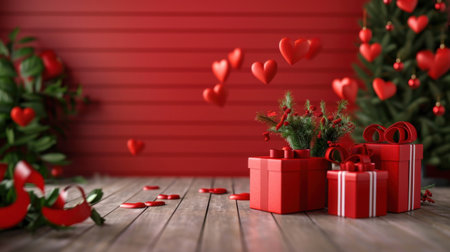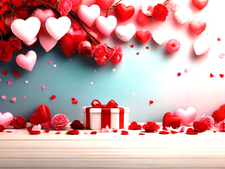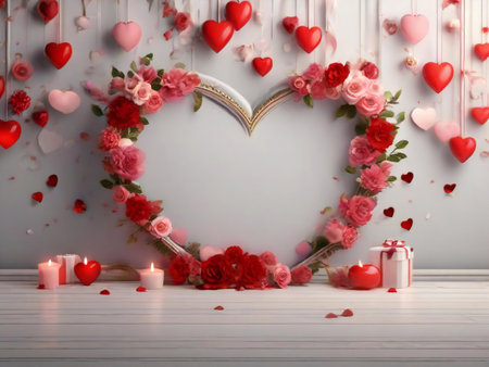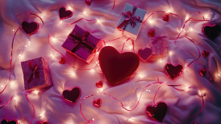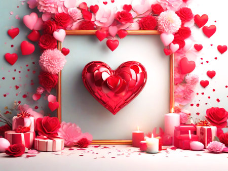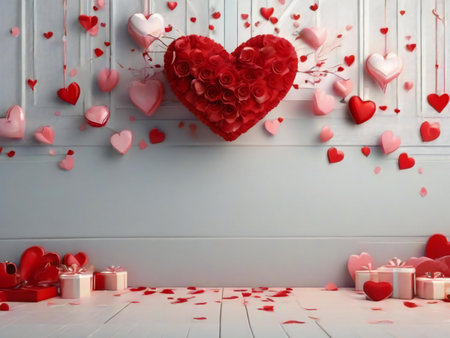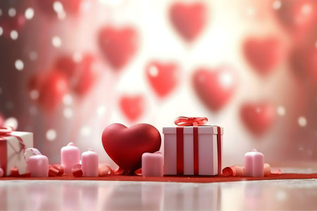 A romantic Valentine's Day scene with a heart-shaped decoration and presents, creating a warm and loving atmosphere.