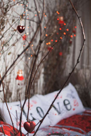 White love pillows with dark wild branches