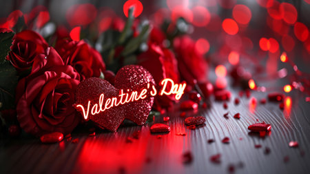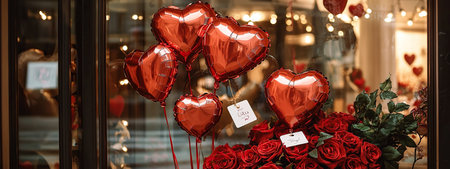 A vivid Valentine's Day scene, heart-shaped blooms.