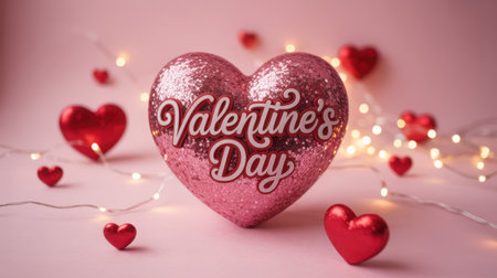 Valentine's day celebration with pink heart and lights