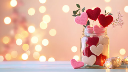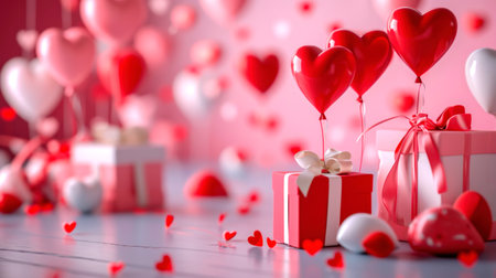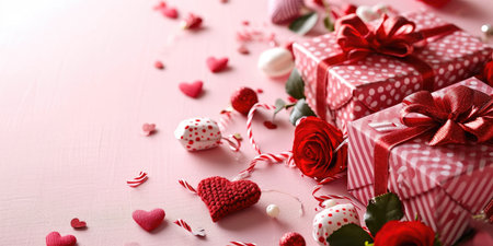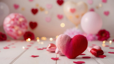 Valentine's Day background: romantic elements, hearts and delicate colors create a festive atmosphere.