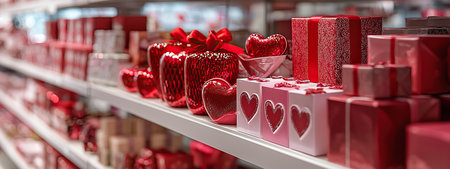 Valentines Day gifts arranged beautifully on store shelf for celebration